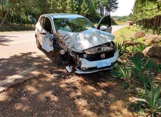 Um automóvel Fiat Argo, de cor branca, com placas de Áurea, colidiu com uma árvore, na manhã desta terça-feira (03), nas proximidades do Km 10, Povoado Argenta, na ERS 477 em Erechim.