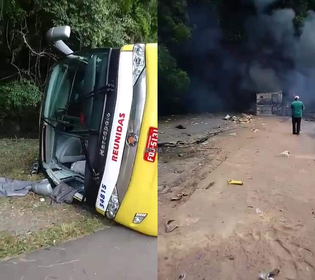 Acidente entre ônibus da reunidas e caminhão deixa uma pessoa morta
