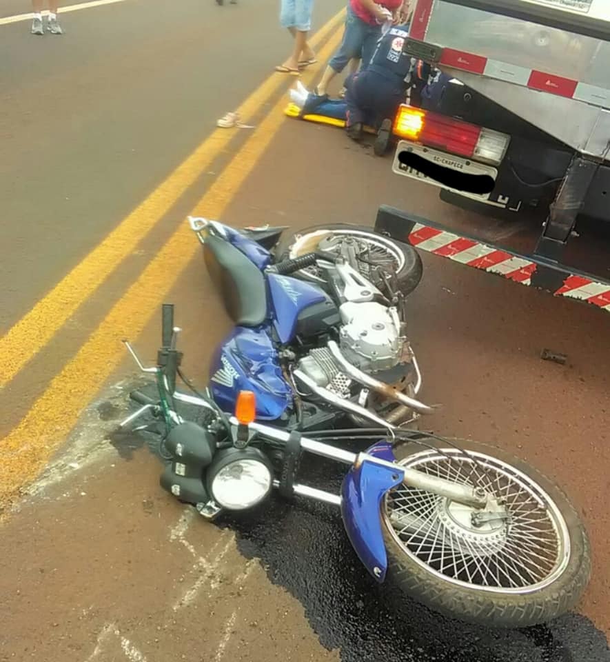 Por volta do meio-dia de hoje (21/1), ocorreu um acidente de trânsito na BR 392, nas proximidades do Posto do Aleixo, envolvendo uma motocicleta e um caminhão.