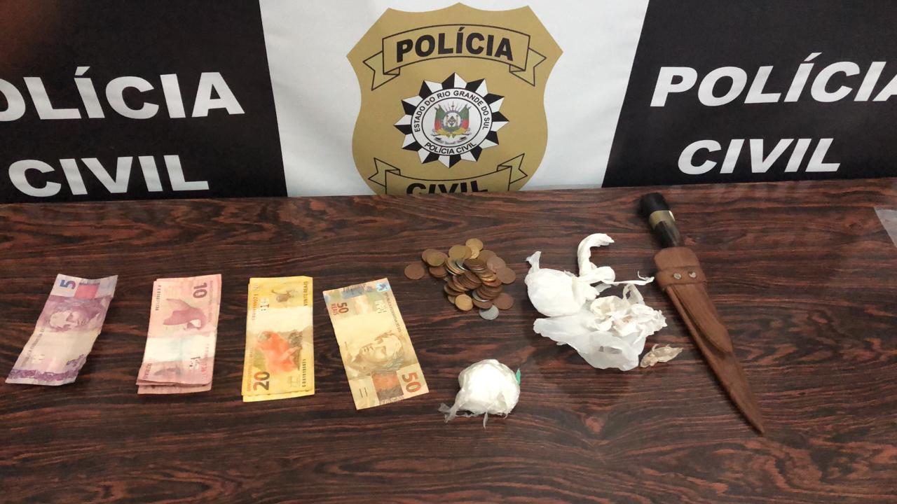 Ali foi encontrada uma porção de cocaína pesando 36 gramas, a qual, fracionada, renderia 187 buchas. Uma mulher, de 29 anos, natural de Santo Ângelo, com antecedente policial por crime contra o patrimônio, foi presa em flagrante pelo crime de tráfico de drogas.