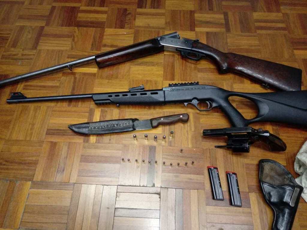 No local, a guarnição da Força Tática realizou abordagem de um Gol e, em revista veicular, localizou um revólver calibre 38, uma carabina calibre 22 (ambas municiadas) e uma espingarda calibre 32 (desmuniciada). O condutor também apresentava visíveis sinais de embriaguez e se recusou a realizar o teste do bafômetro.
