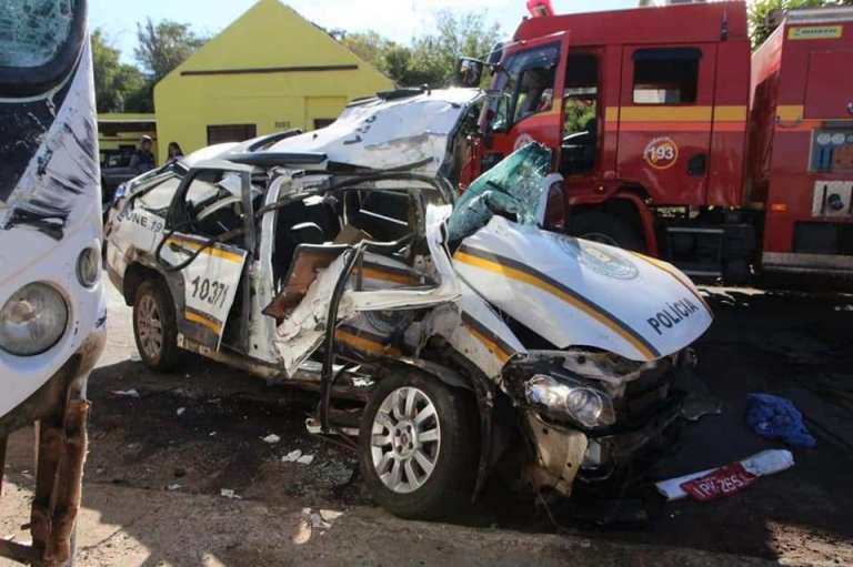 Um grave acidente envolvendo uma viatura da Brigada Militar e um ônibus de uma empresa deixou dois policiais militares feridos, na tarde desse sábado dia 02 de maio, em Santana do Livramento, na fronteira.