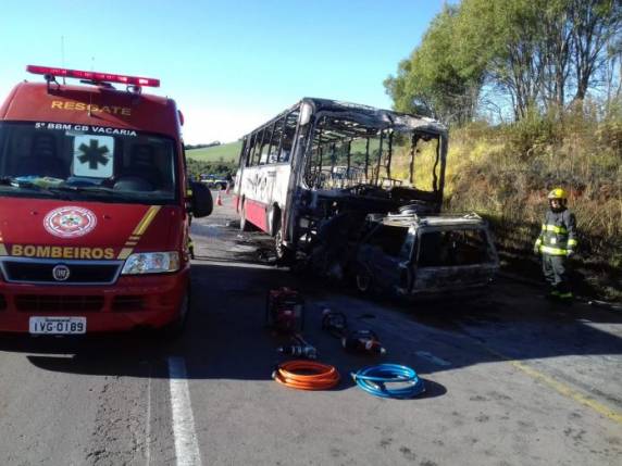O automóvel Quantum, de placas IDS-1765, era emplacado em Caxias do Sul. A Brigada Militar ainda não informou a origem e a propriedade do coletivo. Equipes de segurança seguem trabalhando no trecho do acidente, bloqueado para o trânsito.