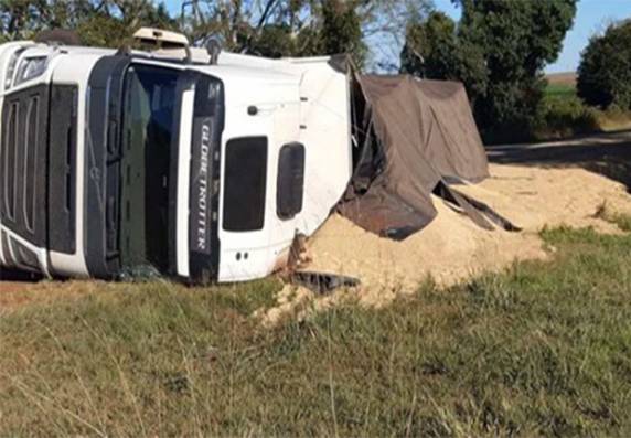 Caminhão carregado com arroz tomba na BR 285 entre Panambi e Santa Bárbara