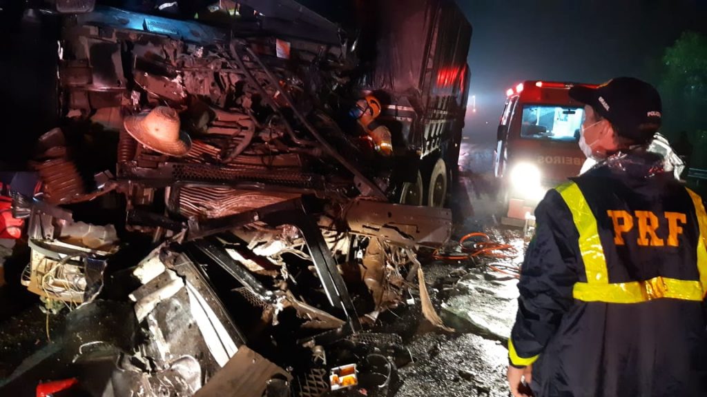 A PRF informou que um dos caminhões (carreta) é de São José do Norte e viajava sentido Jaguari – Santiago quando teria invadido a outra pista e batido num bitrem (de Rio Grande) que transportava soja. O motorista do bitrem (57 anos) foi levado muito ferido para o hospital de Santiago. O condutor da carreta, um homem de 33 anos, não sofreu lesões.