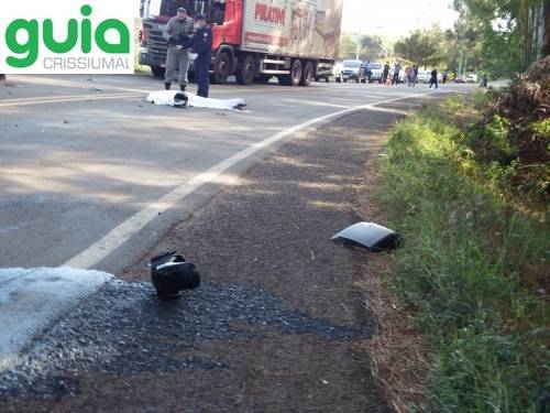 Uma motocicleta colidiu contra um caminhão de transporte de leite, em uma curva, nas proximidades da Vila de Vista Nova. O motociclista, um jovem ainda não identificado, morreu com o impacto.