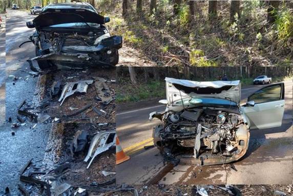 A colisão frontal entre dois veículos ocorreu por volta das 13h 40min na conhecida “Curva do Cagol” .