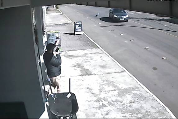 Imagens de uma criança de quatro anos caindo de um carro em movimento em Venâncio Aires, no Vale do Rio Pardo, repercutem em redes sociais. Elas foram captadas pelas câmeras de vigilância de um estabelecimento no cruzamento das ruas Carlos Wagner e Armando Ruschel.