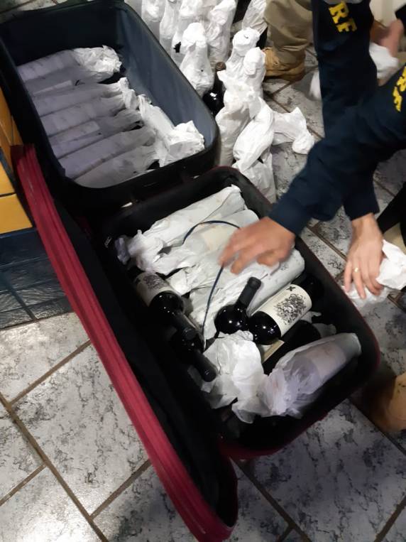 Durante atividades de fiscalização, policiais rodoviários federais abordaram um Gol com placas de Muzambinho-MG que transitava pela BR 386. Ao vistoriar o interior e o bagageiro do veículo, a equipe policial encontrou 36 litros de vinhos argentinos introduzidos ilegalmente no país.