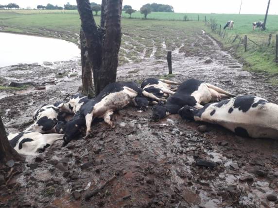 Um raio causou a morte de sete vacas leiteiras na tarde deste sábado (11), em Não-Me-Toque.