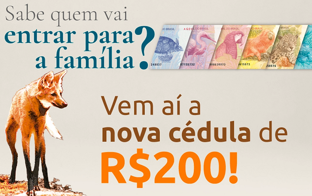 A cédula terá como personagem o lobo-guará. O anúncio foi feito pelo Banco Central (BC), que convocou uma entrevista coletiva para apresentar a nova nota.