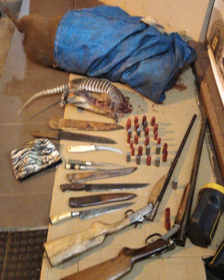 Neste domingo (16/08), após denúncia anônima informando que na localidade de Restinga Seca haviam individuos caçando, policiais militares de São Miguel das Missões, abordaram um veículo VW/GOL com tres indivíduos, ao efetuar revista no veiculo foi encontradado uma espingarda calibre 12 e uma calibre 28, 25 cartuchos de calibre 12, sendo 21 intactos e 04 deflagrados, 05 cartuchos calibre 28 sendo 04 intactos e 01 deflagrado, 5 facas, uma capivara e um tatu já mortos. Dois indivíduos assumiram a autoria dos fatos. Ocorrência encaminhada para a Delegacia da Policia Civil de Santo Ângelo, para registro e providências legais.