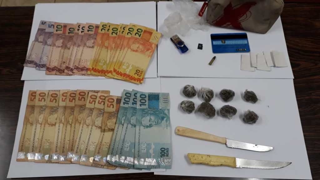 Em um dos locais foram apreendidas porções de maconha e dinheiro e dois homens foram presos em flagrante. Um dos homens é o mesmo que havia sido preso ontem e colocado em liberdade hoje. Ambos foram autuados em flagrante e conduzidos ao presídio.