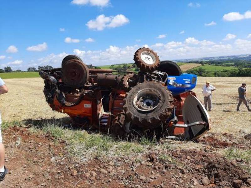 De acordo com informações, um caminhão carregado com sacos de adubo colidiu na traseira de um trator que havia acabado de ingressar na rodovia. O caminhão e o maquinário agrícola capotaram em uma lavoura na lateral da rodovia.