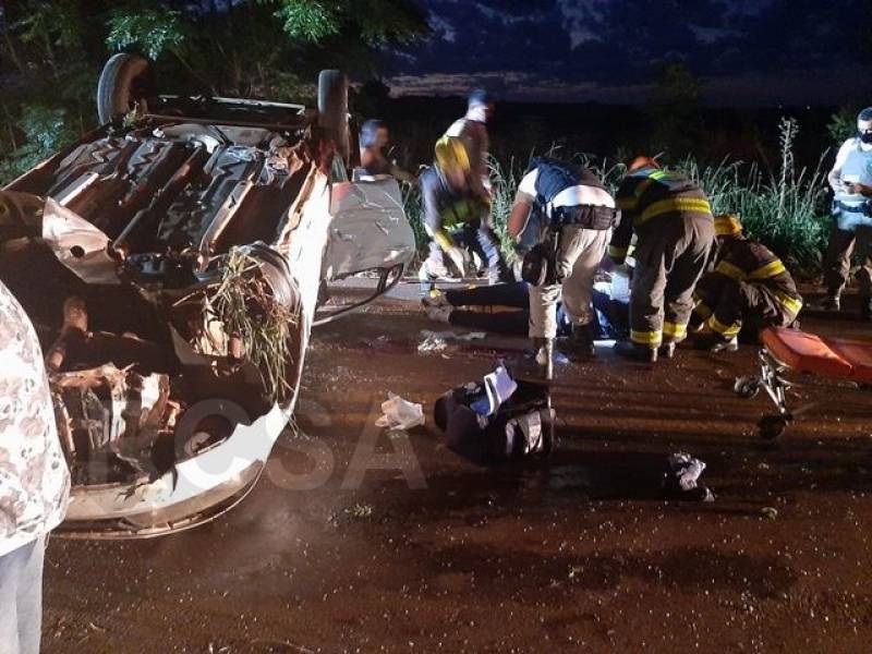 De acordo com as autoridades da área de segurança pública, um eículo Gol acabou saindo da pista, colidiu contra um poste e capotou sobre a pista.