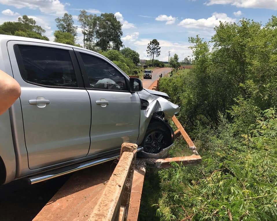 O fato envolveu uma caminhonete Ford Ranger, com placas de Santo Cristo. O motorista não conhecia a ponte (de mão única) e acabou colidindo na lateral.