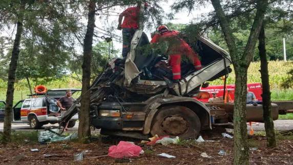 Segundo informações, o motorista que trafegava sentido, Erechim à Chapecó (SC), perdeu o controle do caminhão em uma curva da RSC-480, vindo a colidir com eucaliptos ao lado da via.