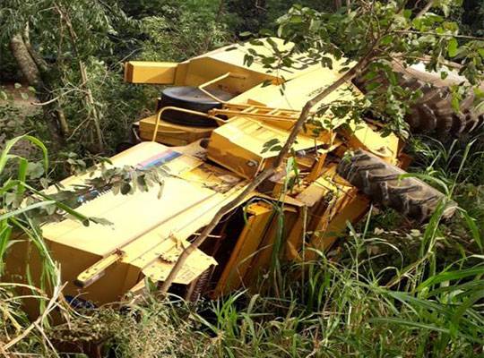 O acidente aconteceu quando o operador da máquina se deslocava de uma lavoura para outra na estrada que liga Coronel Bicaco/Santo Augusto quando por motivos desconhecidos o operador perdeu o máquina caiu em um barranco.