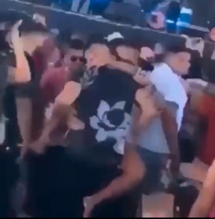 Conforme é mostrado no vídeo, o casal não se importa de estar no meio da multidão e a mulher é mostrada 'cavalgando' no rapaz.