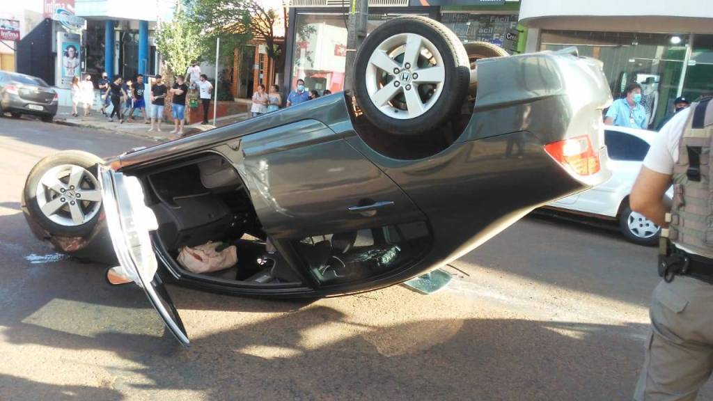 Na ocasião, a condutora de um veículo Honda Civic perdeu o controle do automóvel e acabou capotando em via pública, meia quadra após a Prefeitura Municipal. Ela era idosa.