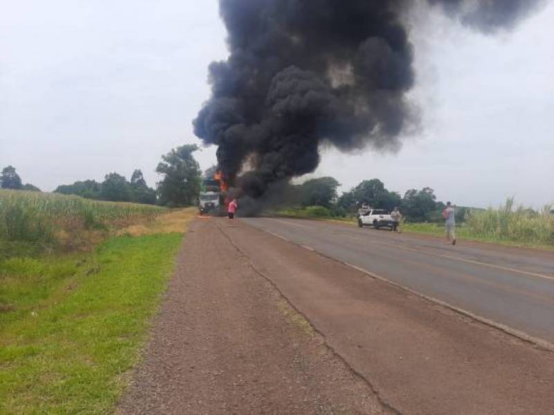 Segundo o condutor, o transporte iniciou em Santa Rosa e rumava ao Mato Grosso. Apenas danos materiais foram computados.