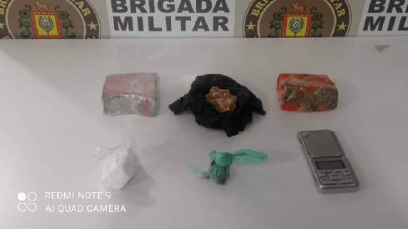 Diante disso, foi monitorado o local da denúncia. No momento em que foi avistado pela guarnição, ele empreendeu fuga. No local, porém, foi encontrada uma mulher de 23 anos, juntamente com ela foi localizada uma sacola, sendo constatado que se tratava de uma grande quantidade de drogas. Eram aproximadamente 513 gramas de maconha, 52 gramas de crack, 50 gramas de cocaína e uma balança de precisão.