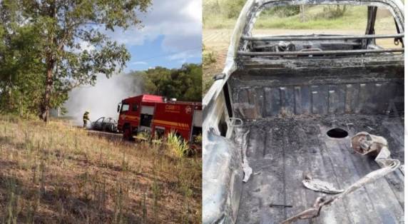 Caminhonete é consumida por incêndio no interior de Sete de Setembro