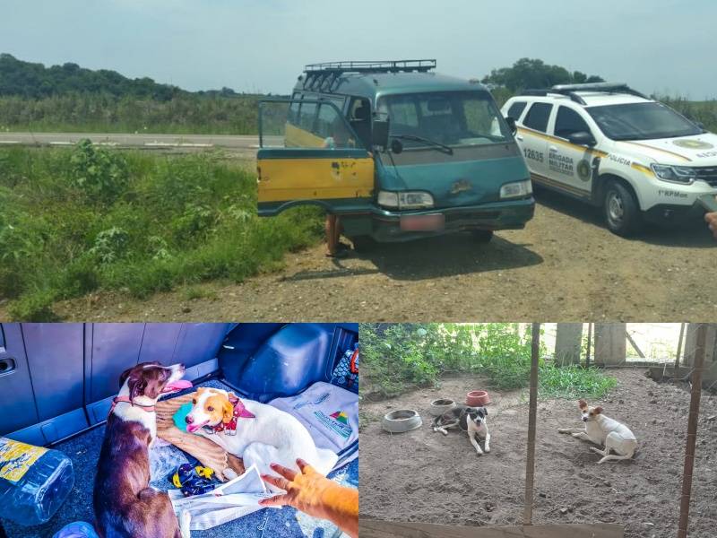 Segundo a polícia, o veiculo parou na faixa e abandonou os cães, que saíram correndo atrás do veículo, momento que a Brigada Militar efetuou a abordagem e deu voz de prisão aos acusados.