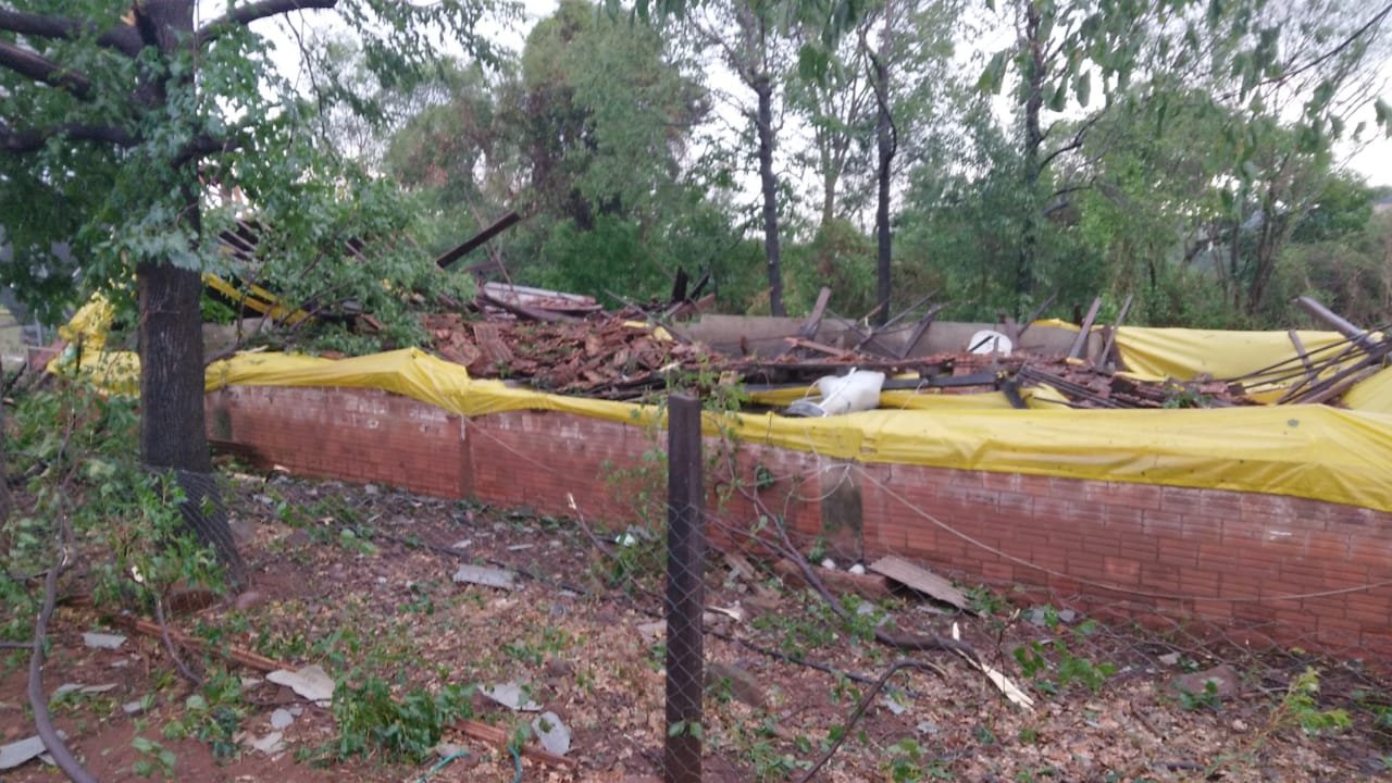 Estragos registrados na propriedade da Família Hidalgo, segundo as primeiras informações. O espaço utilizado para a produção de suínos foi derrubado pelo vento. A pocilga estava sem animais, que seriam internados amanhã. Duas casas na propriedade tiveram danos no telhado.