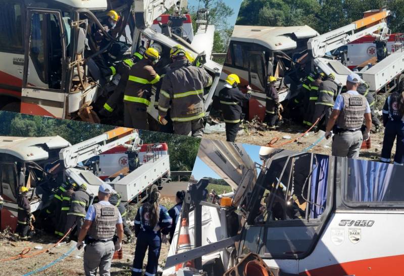 Acidente na BR 392 em Guarani das Missões envolve ônibus e caminhão deixando várias pessoas feridas