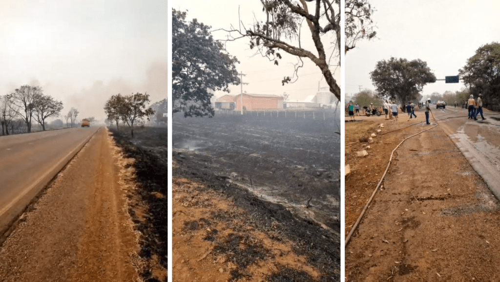 A origem do sinistro ainda é desconhecida. As labaredas se espalharam pelos dois lados da rodovia, atingindo áreas particulares. Houve a queima de caminhões de uma cerealista e de máquinas agrícolas de uma cabanha.