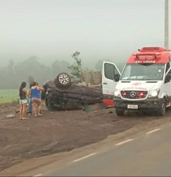 Na foto encaminhada pelo leitor do Portal A Informação é possível identificar um veículo tombado e as vítimas sendo socorridas pelo Serviço de atendimento móvel de urgência (SAMU).