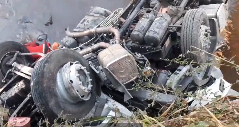 Segundo as primeiras informações um caminhão que transportava outro caminhão em sua carroceria, por motivos desconhecidos o motorista perdeu o controle do mesmo e veio a cair dentro do Rio Caxambu.