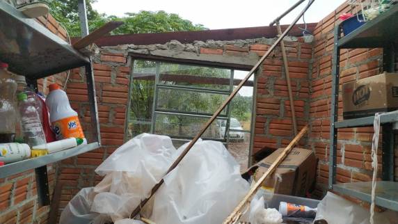 Em torno de 50 casas foram atingidas a maioria delas com danos parciais aos telhados e consequentemente prejuízos em móveis e materiais de uso doméstico que acabam molhando.