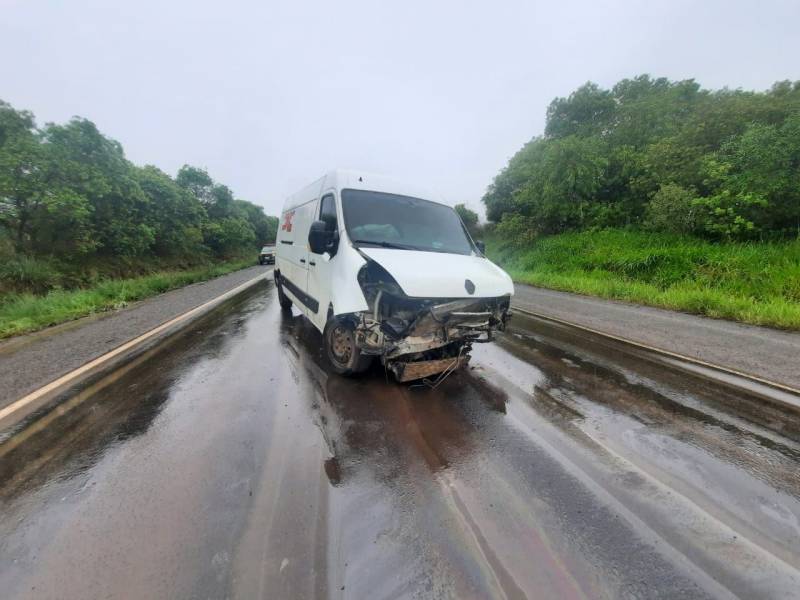 Van Renault Master aquaplanou na BR 285 colidindo em barranco
