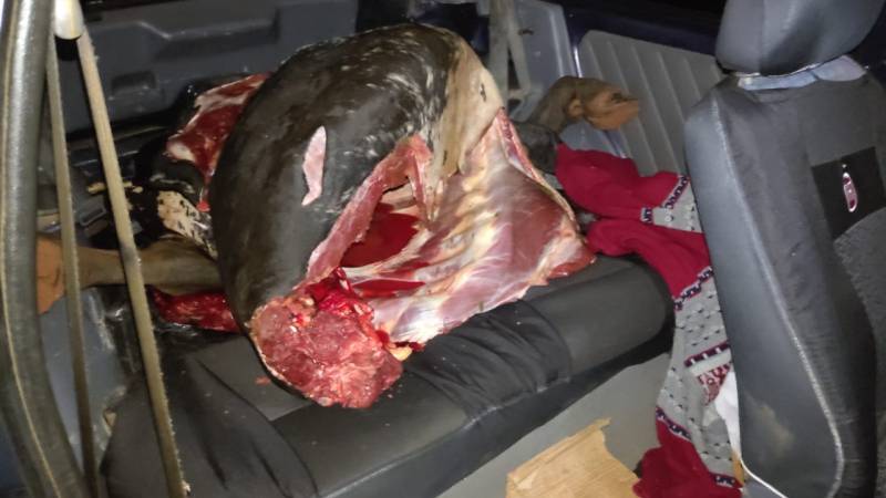 Ao término da ocorrência o preso foi liberado, as carnes foram restituídas ao proprietário dos animais e os veículos recolhidos ao pátio do guincho.Material apreendido:• 1 VW Gol• 1 Fiat Pálio