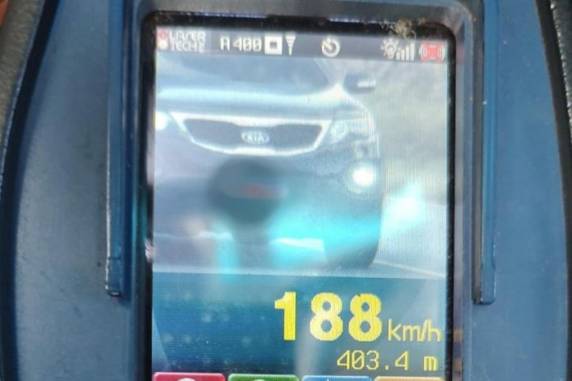 Policiais do 1° Batalhão Rodoviário da Brigada Militar, do pelotão de Erechim, flagraram um Kia Sorento, emplacado em Carazinho, trafegando a 188 km/h na RS-135, na altura do km 72, neste domingo (17). A velocidade máxima permitida no trecho é de 80 km/h.