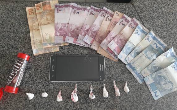 Ele foi identificado como um adolescente de 17 anos, natural de Guarapuava-PR, com diversos antecedente policiais como menor infrator. Durante a busca pessoal foi localizado com ele 01 aparelho celular e em um dos bolsos, 01 tubo de plástico contendo 08 buchas de cocaína e R$ 150, 00 em moeda corrente.