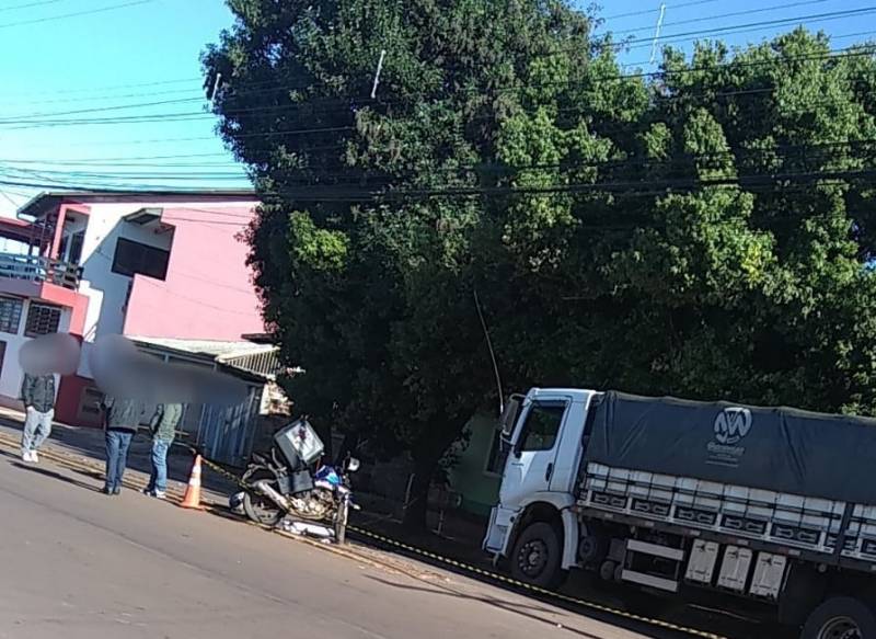 Em virtude disso ele perdeu o controle da moto, atravessou a avenida colidindo frontalmente com um caminhão que seguia no sentido contrário.