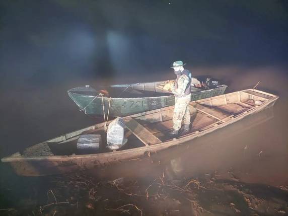 Os membros da Instituição realizavam uma patrulha noturna no rio Uruguai quando, no quilômetro 1157, detectaram um barco com sua tripulação e pacotes dentro.