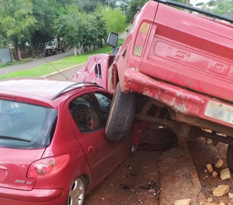 Em virtude da falha mecânica o carro ganhou alta velocidade colidindo na traseira de uma caminhonete que estava estacionada.