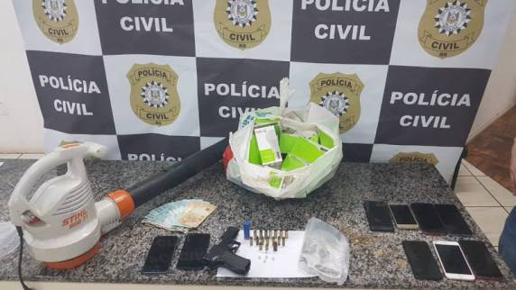Dentre os objetos apreendidos constam um revólver calibre 38, diversas munições de vários calibres, drogas, aparelhos celulares e demais objetos sem procedência.