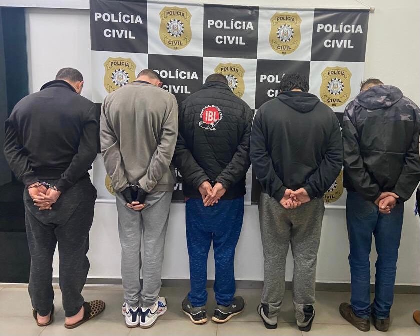Cinco elementos foram presos – um, inclusive, de pantufas – na noite desta sexta-feira (19), em Cerro Largo, no Bairro São Fernando, nas proximidades do Parque de Exposições.