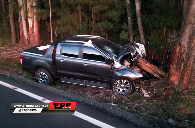 Por volta das 4h30 da madrugada deste sábado (26), um grave acidente de trânsito foi registrado no KM 47 da ERS-135, entre Estação e Sertão. O motorista de uma Ford/Ranger, cinza, com placas de Passo Fundo, que seguia sentido Getúlio Vargas, perdeu o controle do veículo, saiu da pista e bateu de frente em uma árvore.