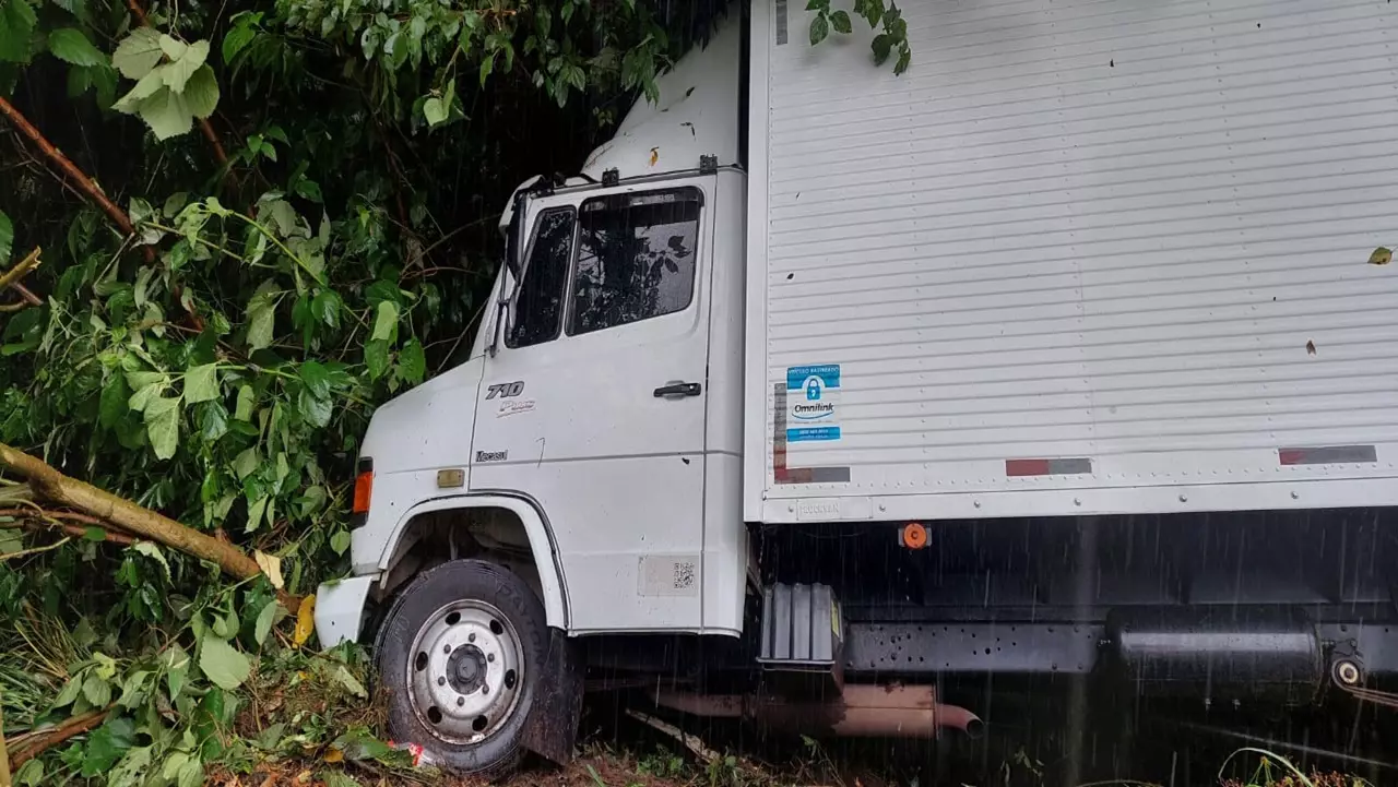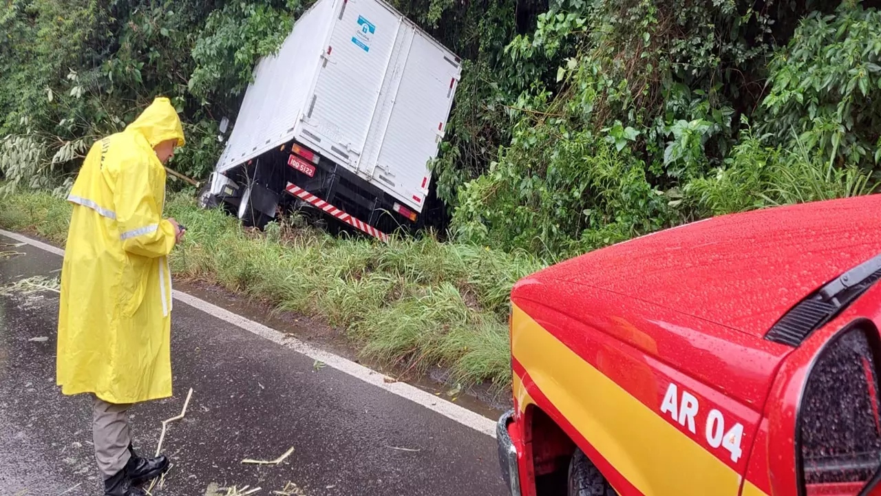 Saída de pista deixa motorista de caminhão com lesões na ERS-446 em Carlos Barbosa