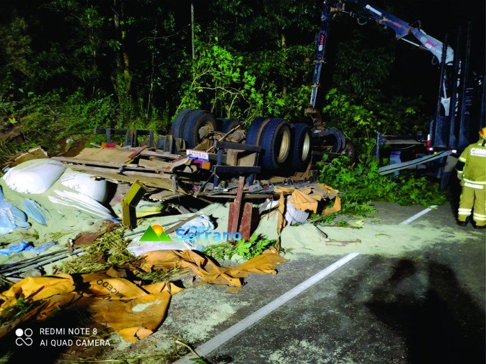 O caminhão estava carregado com produtos inflamáveis em big bags, enxofre de bentonita.