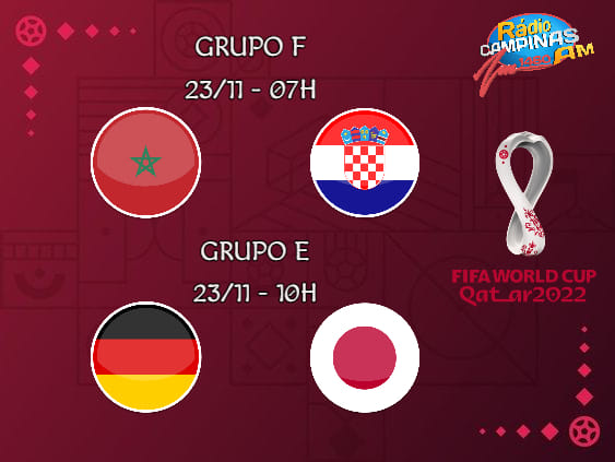COPA DO MUNDO - Confira os jogos dessa manhã 23/11 07h: MARROCOS X CROÁCIA???????? 10h: ALEMANHA X JAPÃO