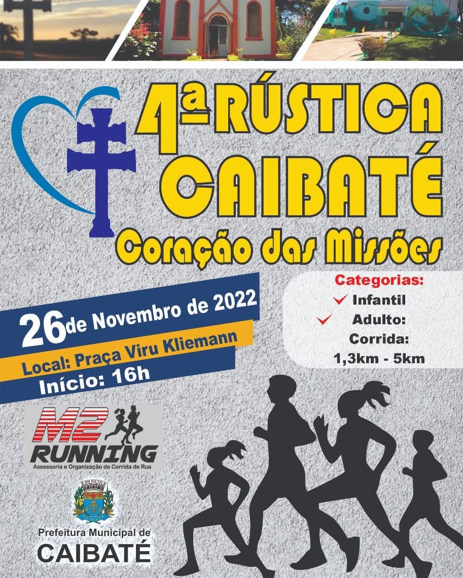 A 4ª Rústica de Caibaté será realizada a partir das 14 horas, junto ao Pavilhão Cultural Valdir Velozo. Venha prestigiar!