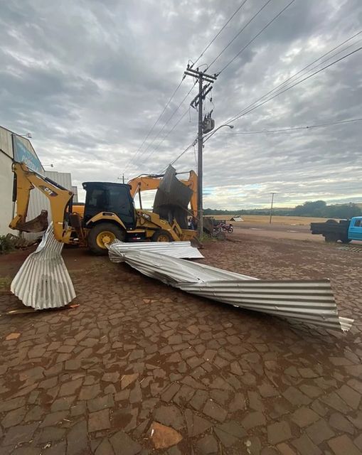 A instabilidade acompanhada de fortes rajadas de vento arrancou parte da decoração natalina no município, derrubou galhos de árvores e destelhou parte da Copa de uma quadra de futebol society localizada às margens da RSC 472 em Tenente Portela saída para o município de