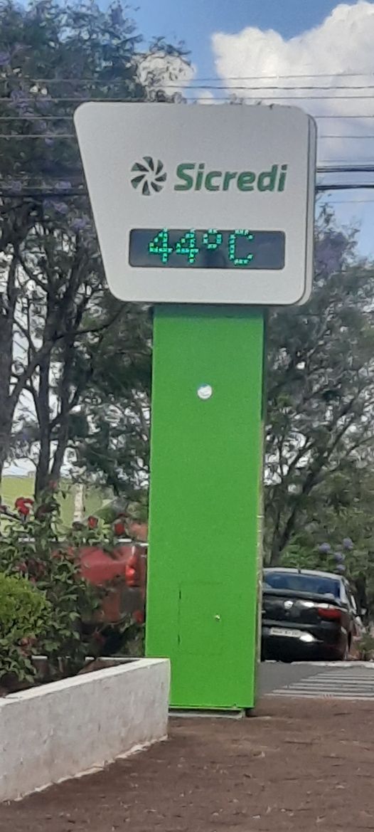 Na tarde desta quarta-feira(21), às 16h09min o termometro digital da Praça Tiradentes, em Roque Gonzales, assinalava 44° de temperatura, recode para o ano, dando boas vindas ao verão, que nem começou.